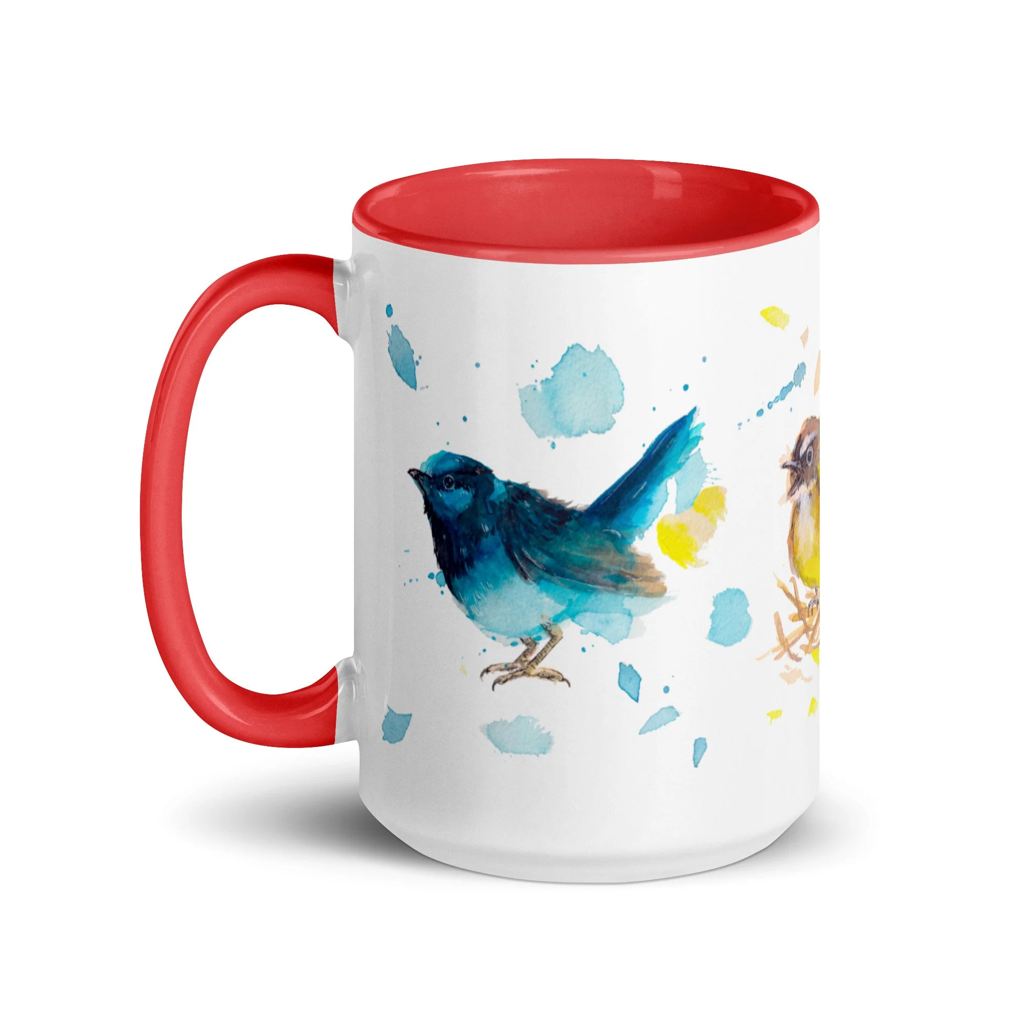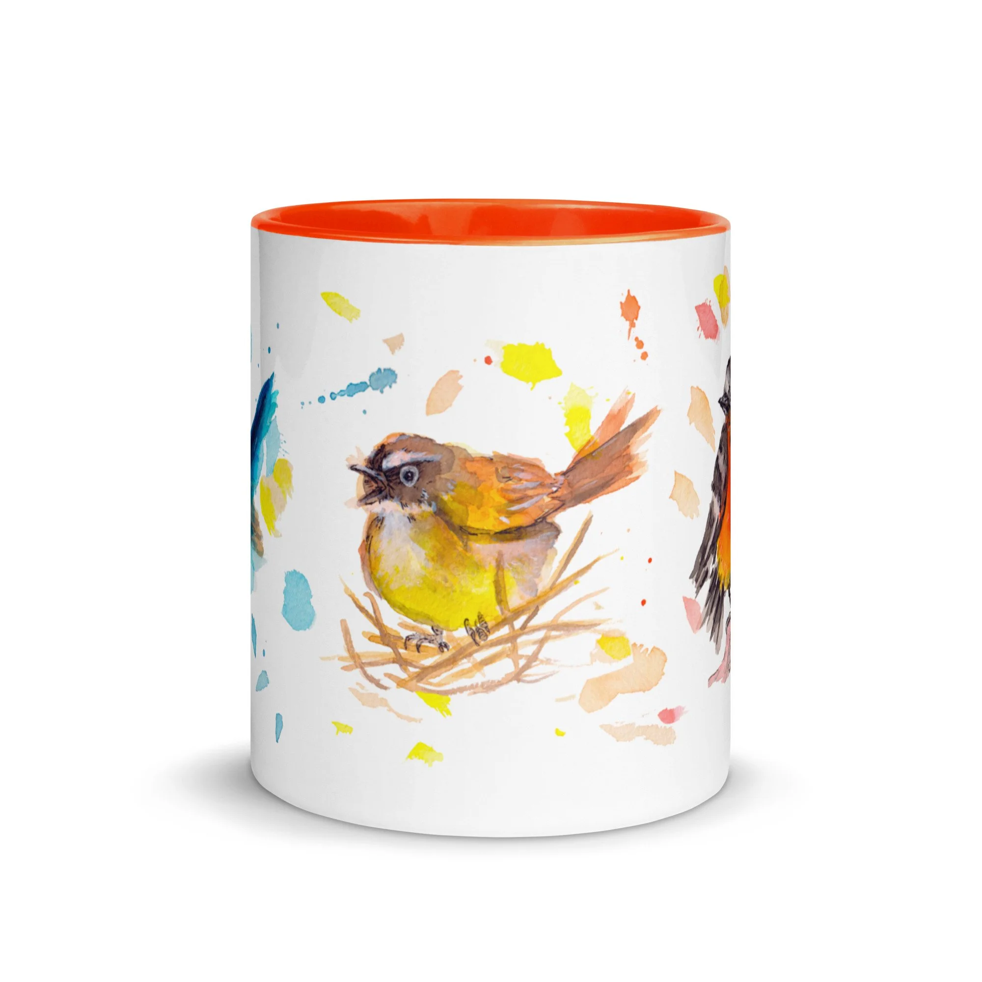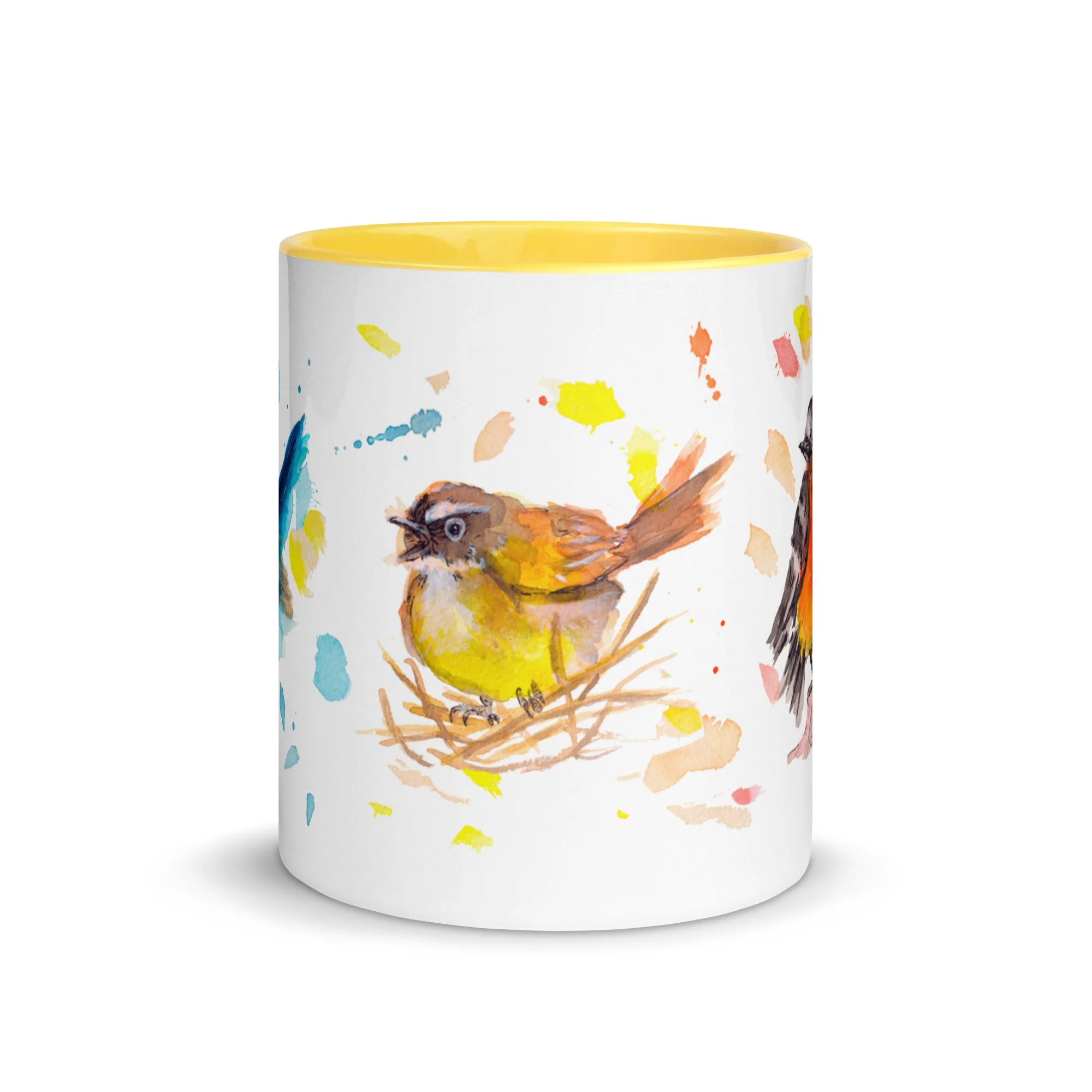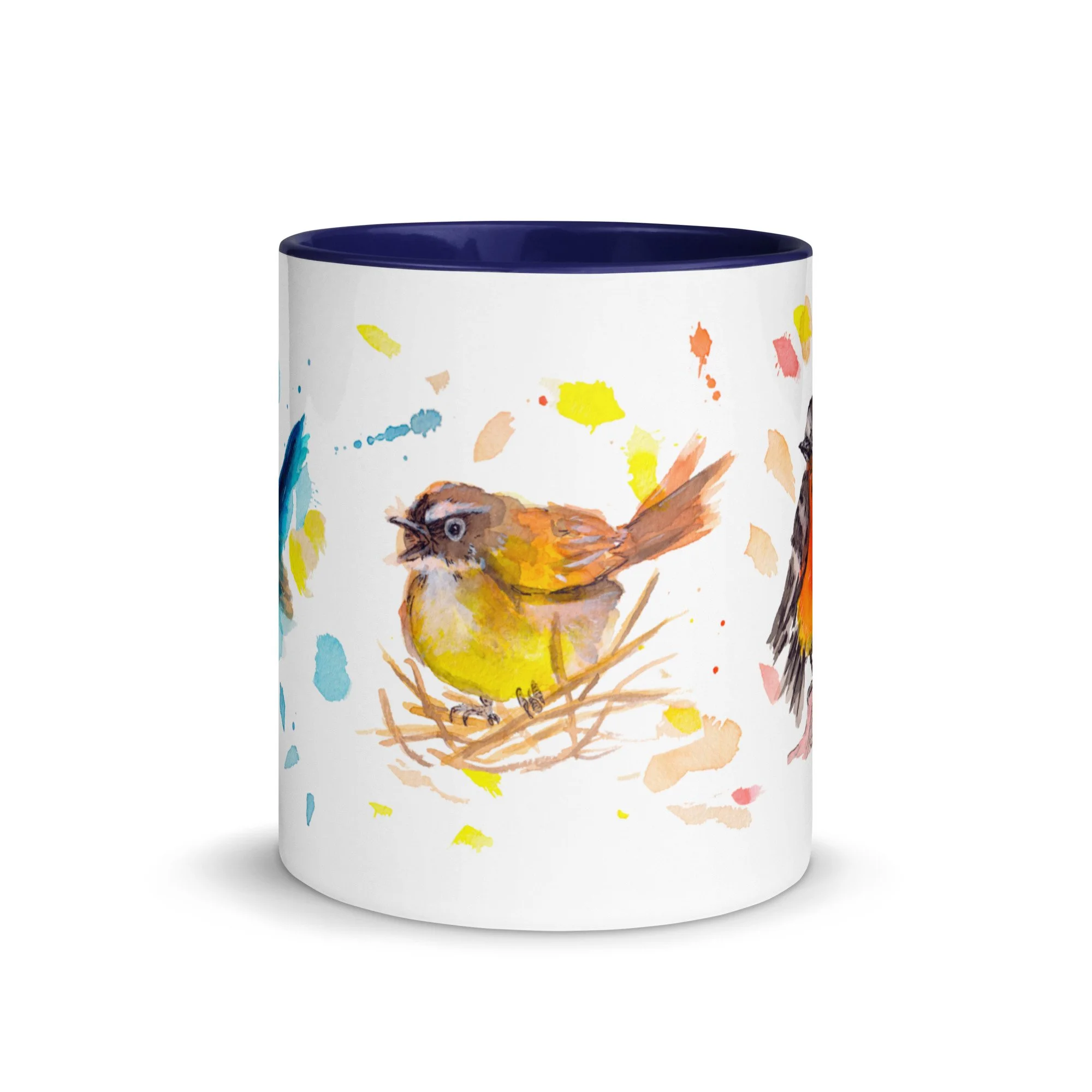 Primary Bird Trio on Mug with choice of colour Inside