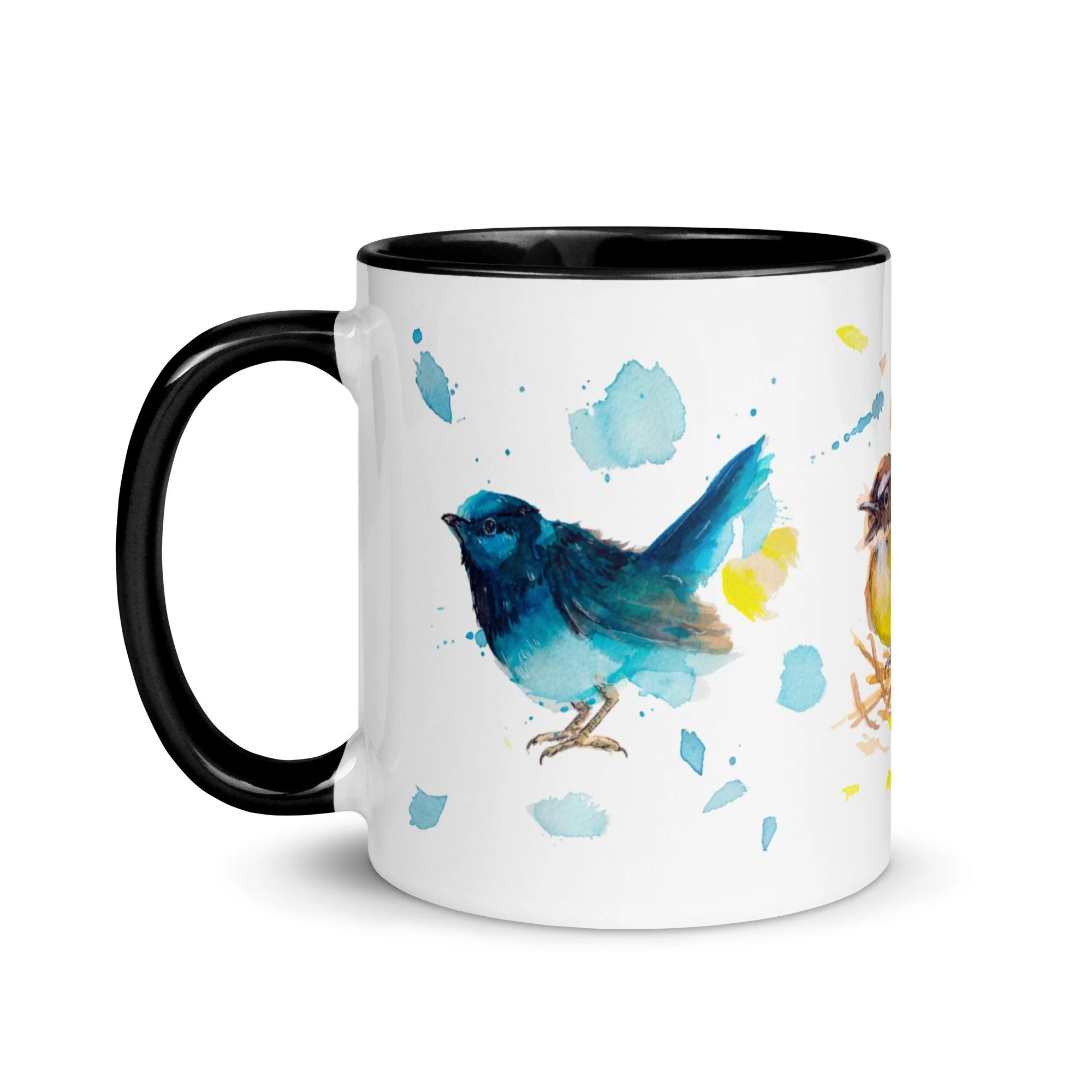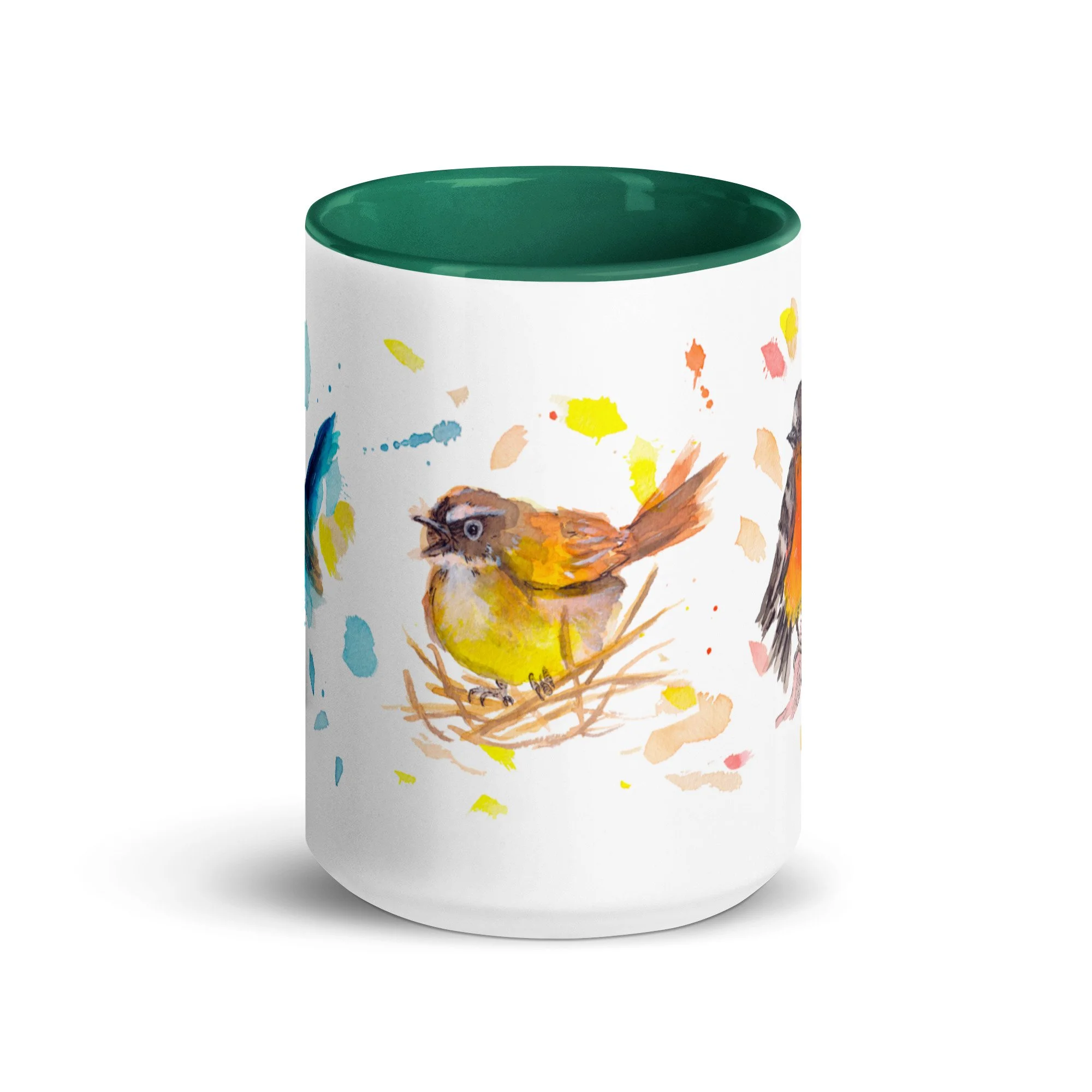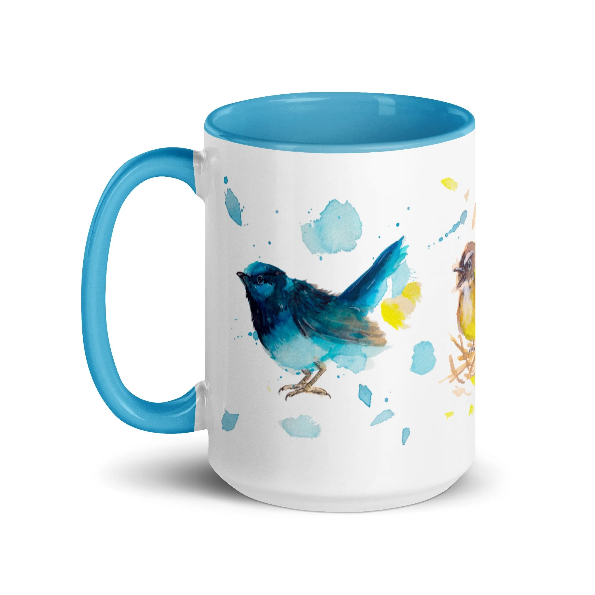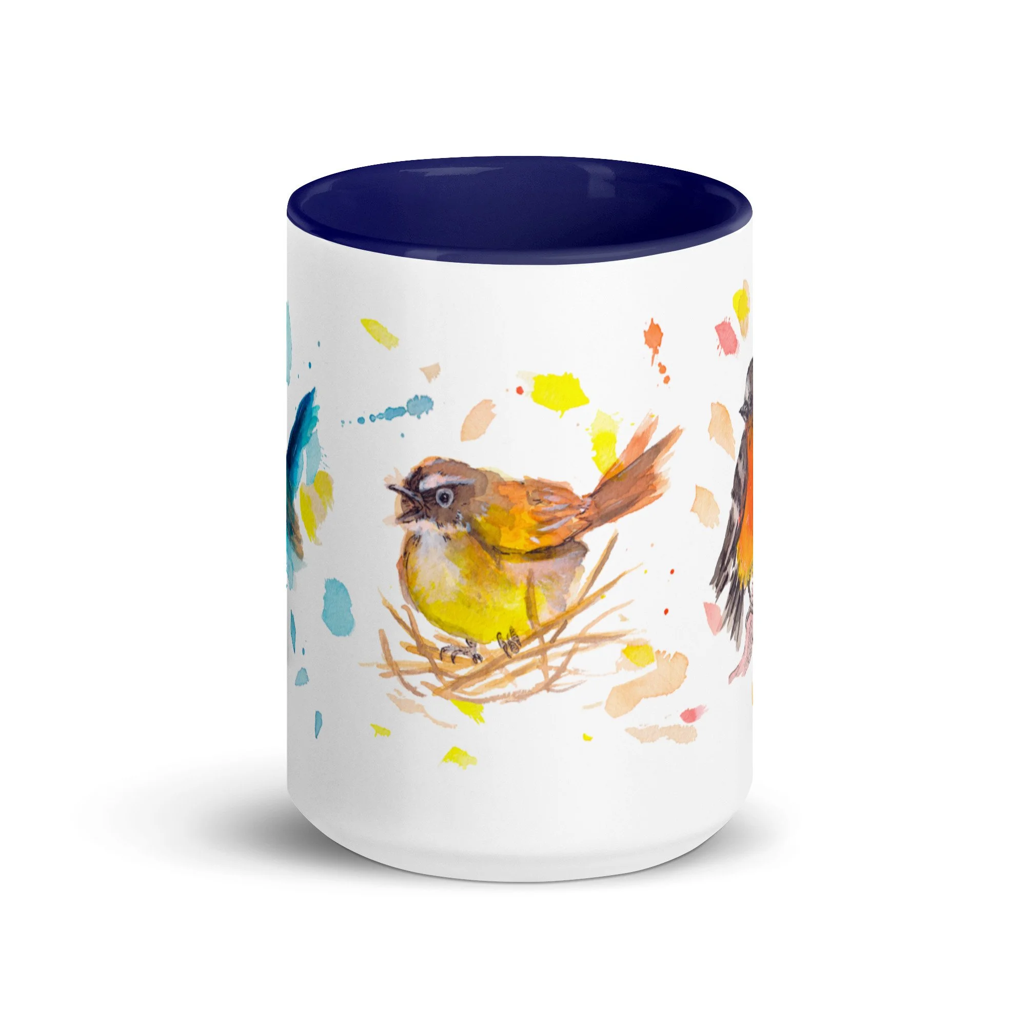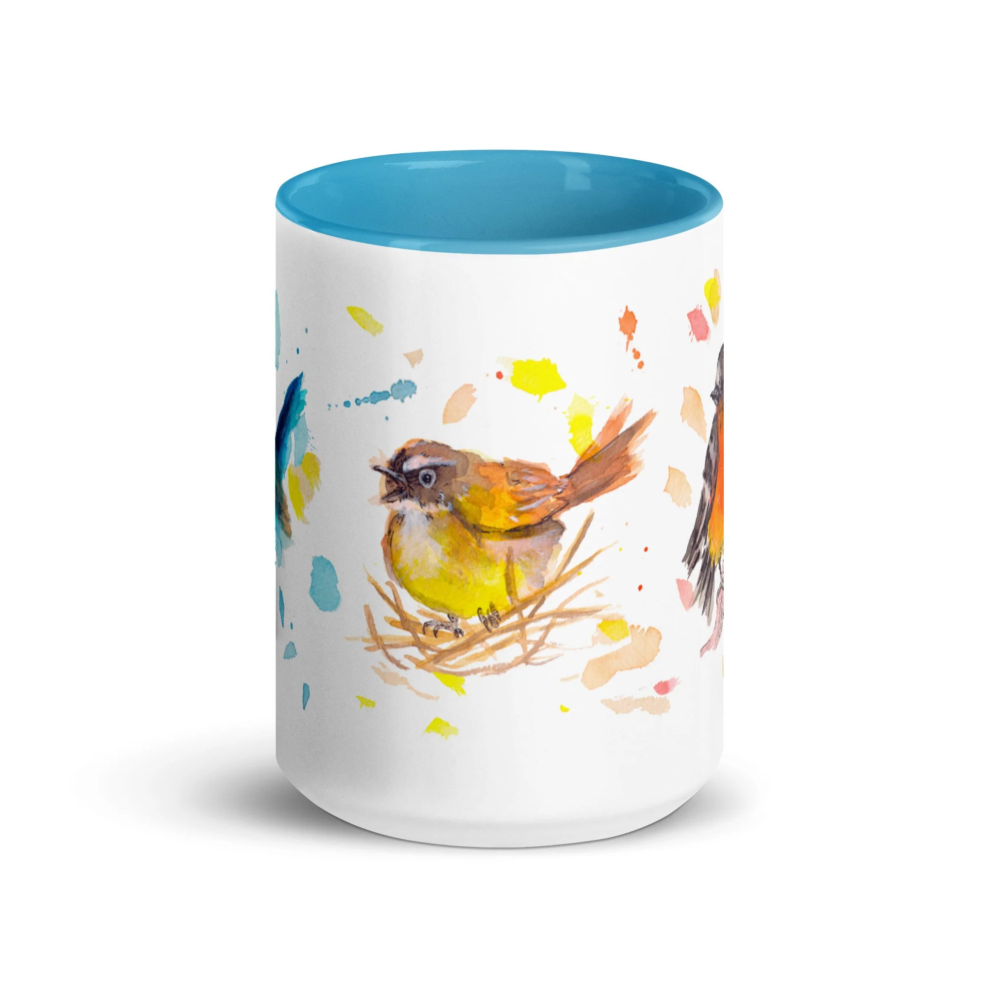 Primary Bird Trio on Mug with choice of colour Inside
