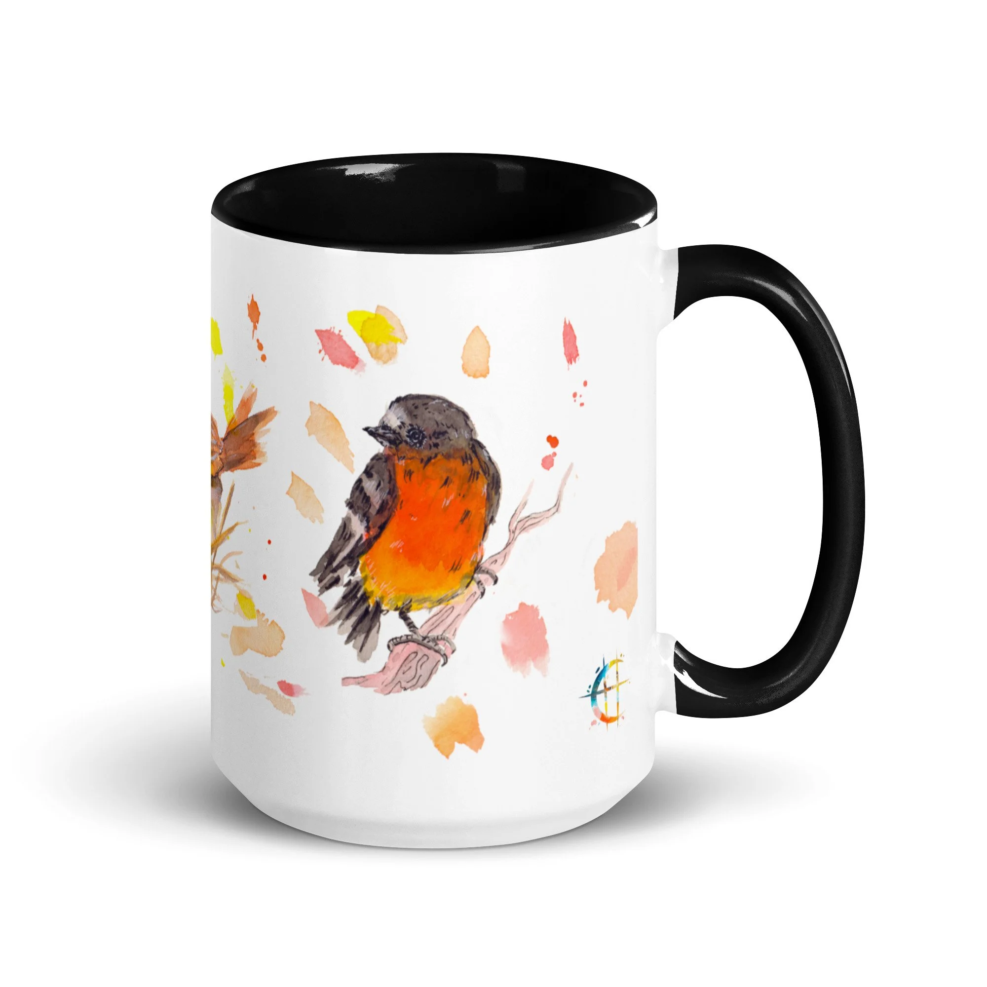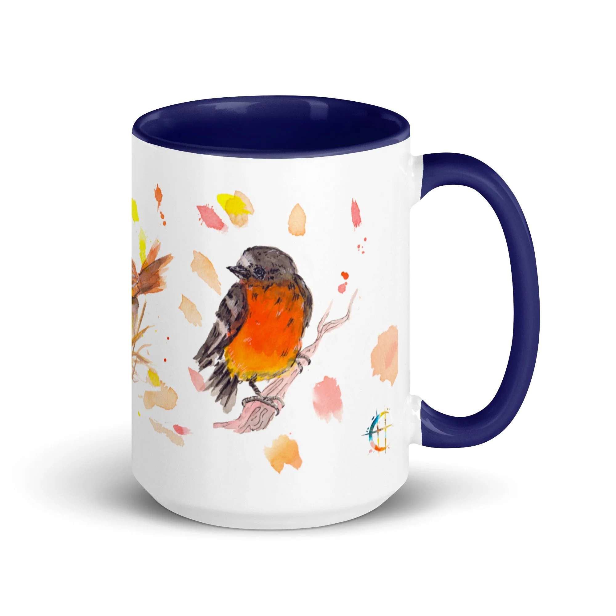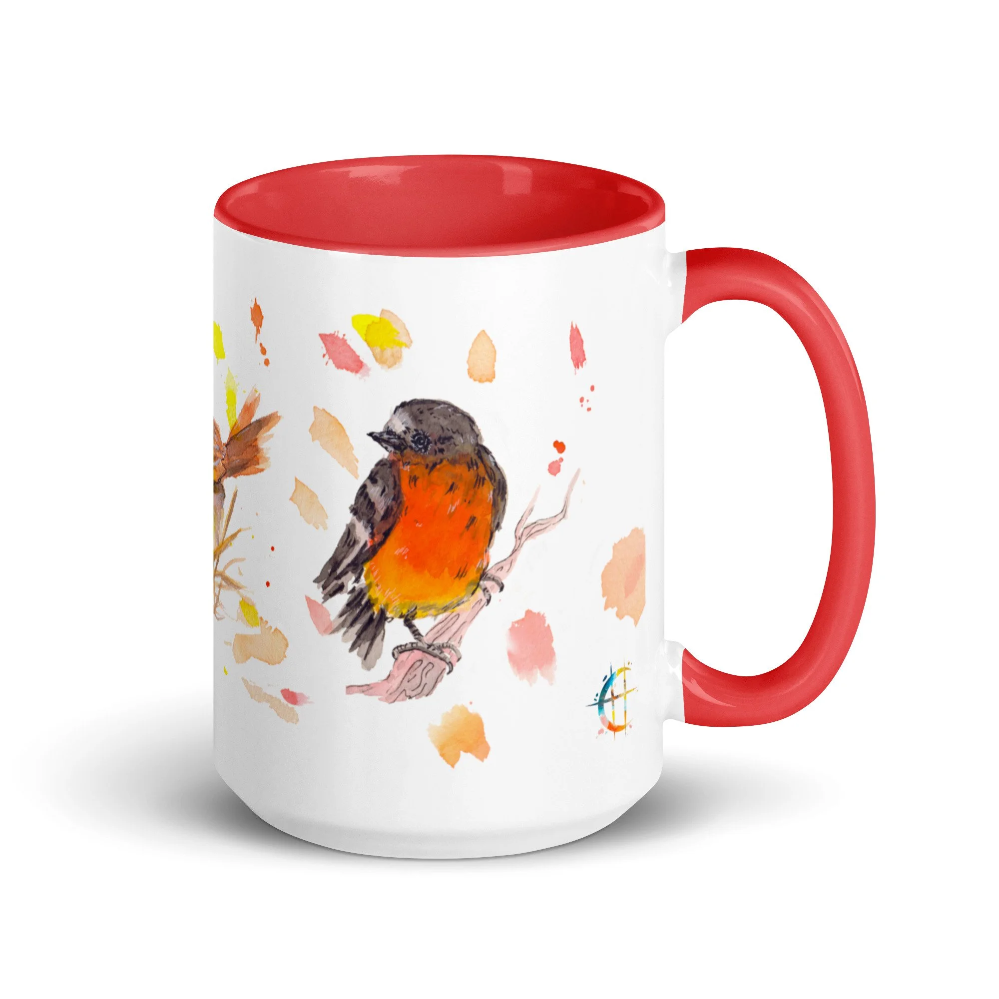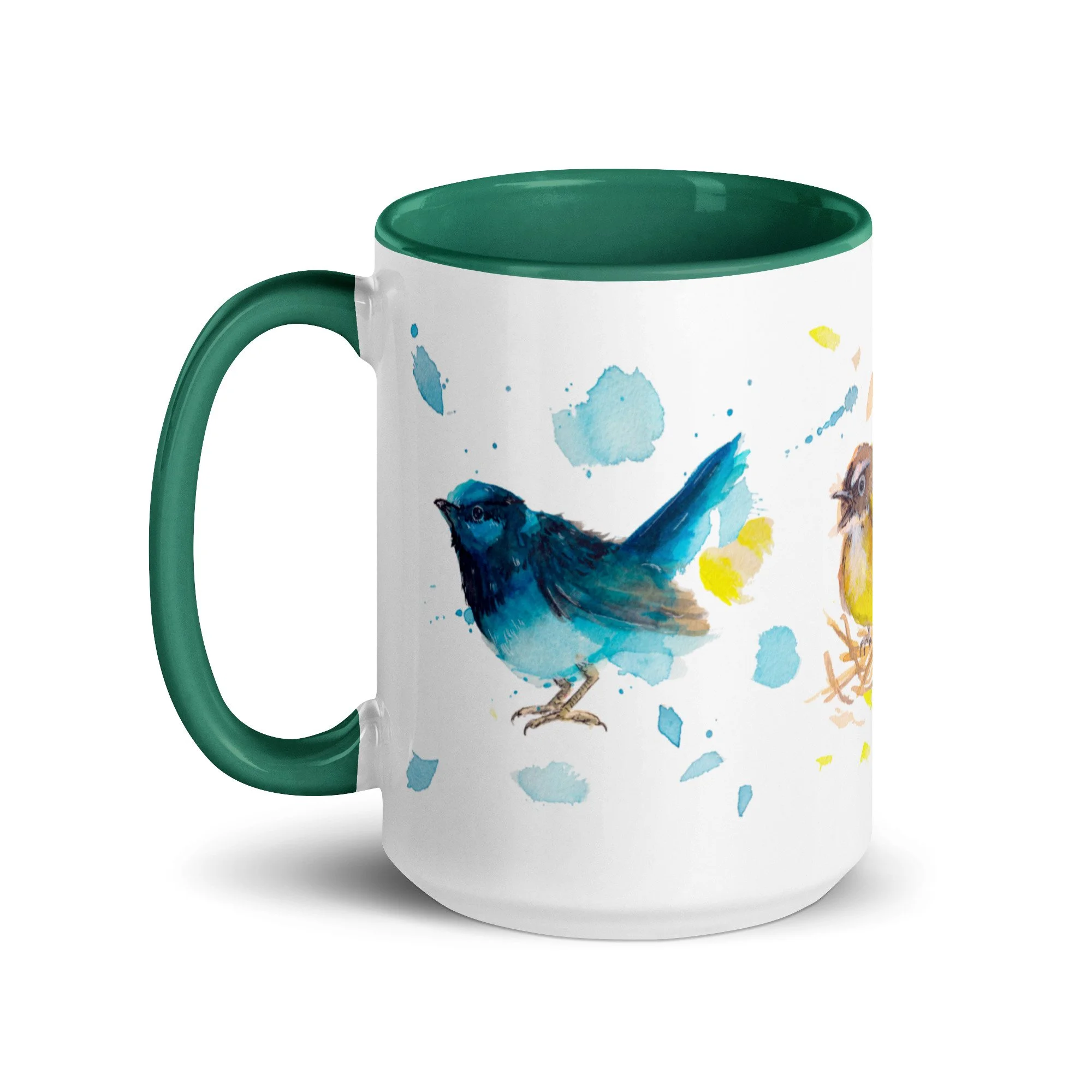 Primary Bird Trio on Mug with choice of colour Inside